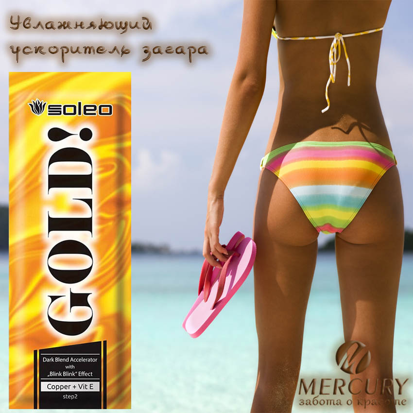 Soleo Gold - это сильно увлажняющий ускоритель загара с чудесными минеральными золотыми микрочастицами, витаминами Е и С, алое и водорослями, с прекрасным запахом солнечного лета.